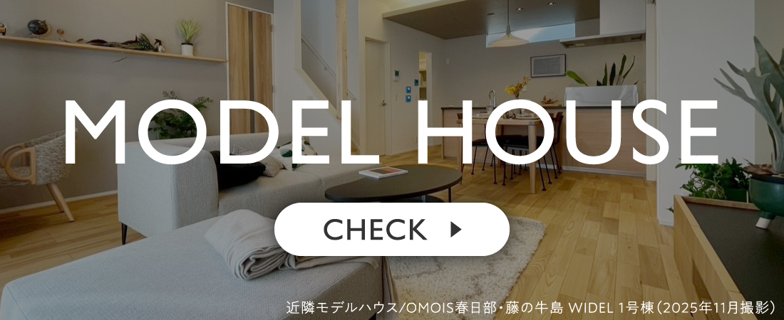 近隣のモデルハウスで、建物完成後の雰囲気や設備などをご覧いただけます。