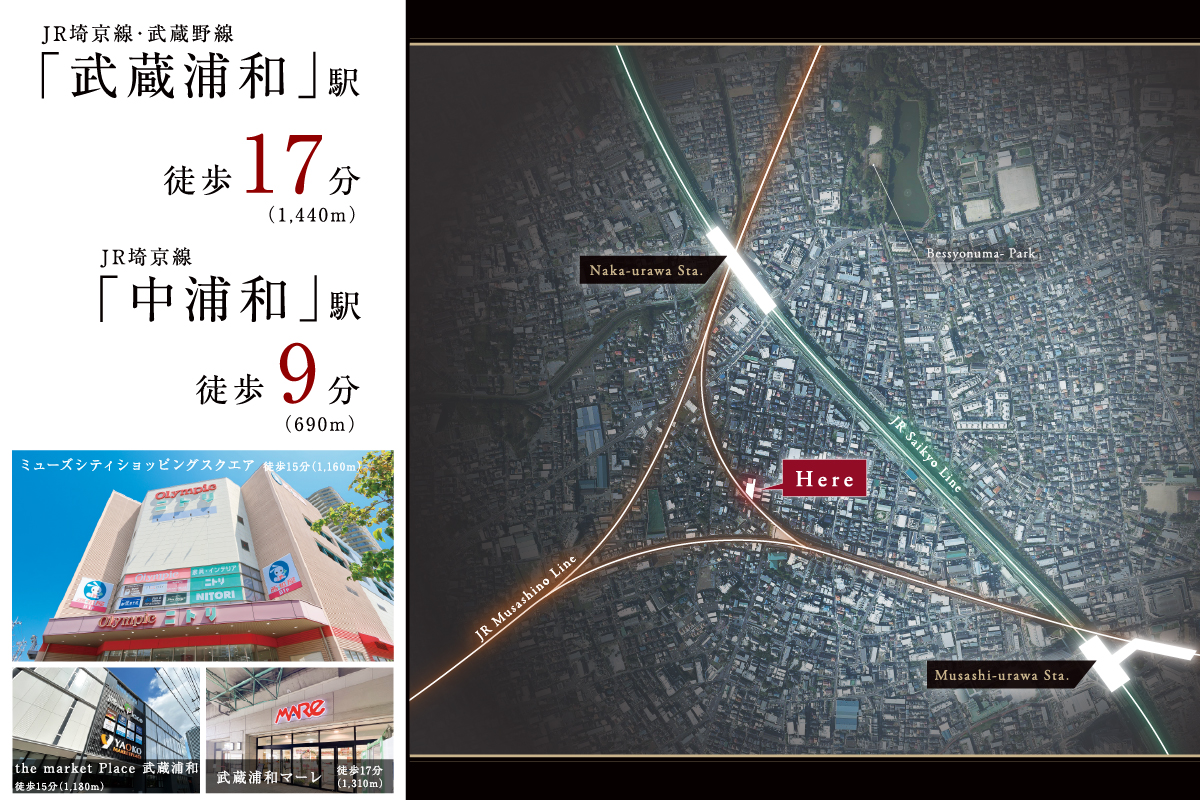 ■2駅利用可能、生活施設が揃い利便性を享受できる住環境・JR埼京線・武蔵野線「武蔵浦和」駅徒歩17分・JR埼京線「中浦和」駅徒歩9分・「大宮」駅や「池袋」駅へダイレクトにアクセス可能■歴史と格式が息づく浦和の地に描き出す気品漂う街並み■機能性と美意識を凝らした設備とアイテムを随所に採用■暮らしに奥行きと遊び心を添える3LDK+αの空間