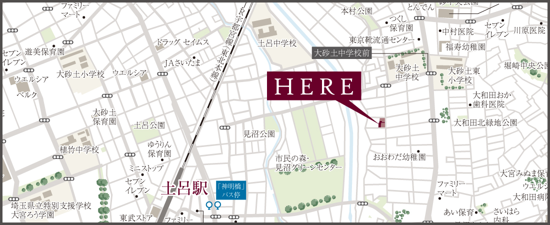 JR東北本線「東大宮」駅まで徒歩22分 自転車7分(実測)
