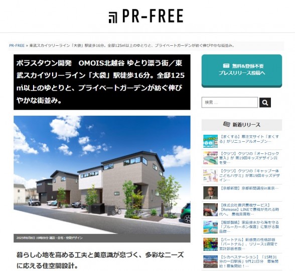この度、ポラスタウン開発株式会社(本社:埼玉県さいたま市南区、代表取締役:中内晃次郎)は、新築一戸建分譲住宅『OMOIS北越谷 ゆとり漂う街』(埼玉県越谷市、全4邸)を販売することを、お知らせいたします。