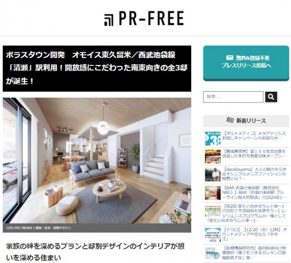 この度、ポラスタウン開発株式会社(本社:埼玉県さいたま市南区、代表取締役:中内晃次郎)は、新築一戸建分譲住宅『OMOIS(オモイス)東久留米』(東京都東久留米市、全3邸)を販売することを、お知らせいたします。