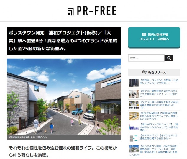 この度、ポラスタウン開発株式会社(本社:埼玉県さいたま市南区、代表取締役:中内晃次郎)は、新築一戸建分譲住宅『浦和プロジェクト(仮称)』(埼玉県さいたま市、全25邸)を販売することを、お知らせいたします。