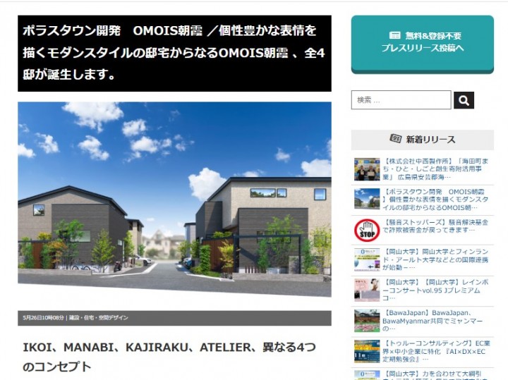 この度、ポラスタウン開発株式会社(本社:埼玉県さいたま市南区、代表取締役:中内晃次郎)は、新築一戸建分譲住宅『OMOIS朝霞』(埼玉県朝霞市、全4邸)を販売することを、お知らせいたします。