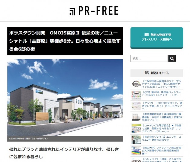 この度、ポラスタウン開発株式会社(本社:埼玉県さいたま市南区、代表取締役:中内晃次郎)は、新築一戸建分譲住宅『OMOIS宮原Ⅱ 優景の街』(埼玉県さいたま市北区、全6邸)を販売することを、お知らせいたします。