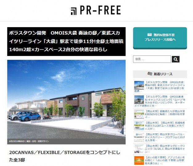この度、ポラスタウン開発株式会社(本社:埼玉県さいたま市南区、代表取締役:中内晃次郎)は、新築一戸建分譲住宅『OMOIS大袋 奏詠の邸』(埼玉県越谷市、全3邸)を販売することを、お知らせいたします。