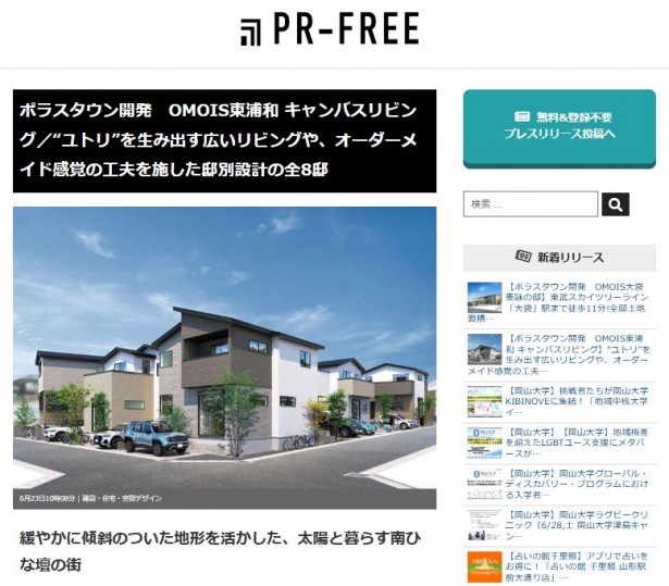 この度、ポラスタウン開発株式会社(本社:埼玉県さいたま市南区、代表取締役:中内晃次郎)は、新築一戸建分譲住宅『OMOIS東浦和 キャンバスリビング』(埼玉県さいたま市緑区、全8邸)を販売することを、お知らせいたします。