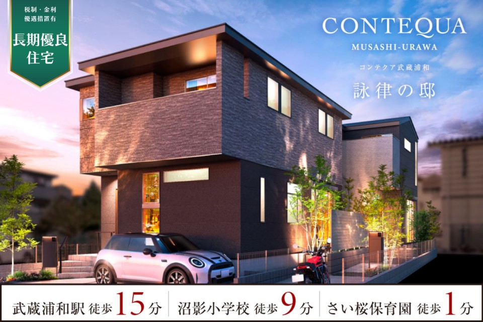 駅前の喧騒を離れた住宅街の一角に、新しい街並みをつくりました。全邸が南道路に面した立地に加え、ゆとりを生み出す街区形成を実施。品格を纏う外観デザインと快適な暮らしを演出するアイデアを込め、7組のご家族をお迎えします。※モデルハウス1号棟(2025年11月撮影)