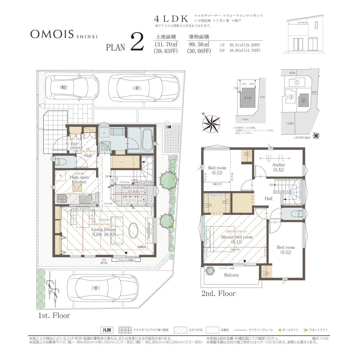 4LDK+マルチコーナー+ウォークインクロゼット+土間収納+リネン庫+納戸 ※アトリエも間取りに含まれております。