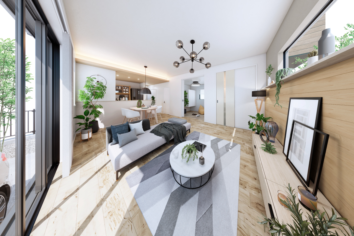 北欧のミニマリズムを際立たせ、都会的な印象をもたらすデザイン。素朴さと洗練が調和する空間の中で、自分らしく過ごせる心地よい時間を楽しめます。※15号棟LDK完成予想図