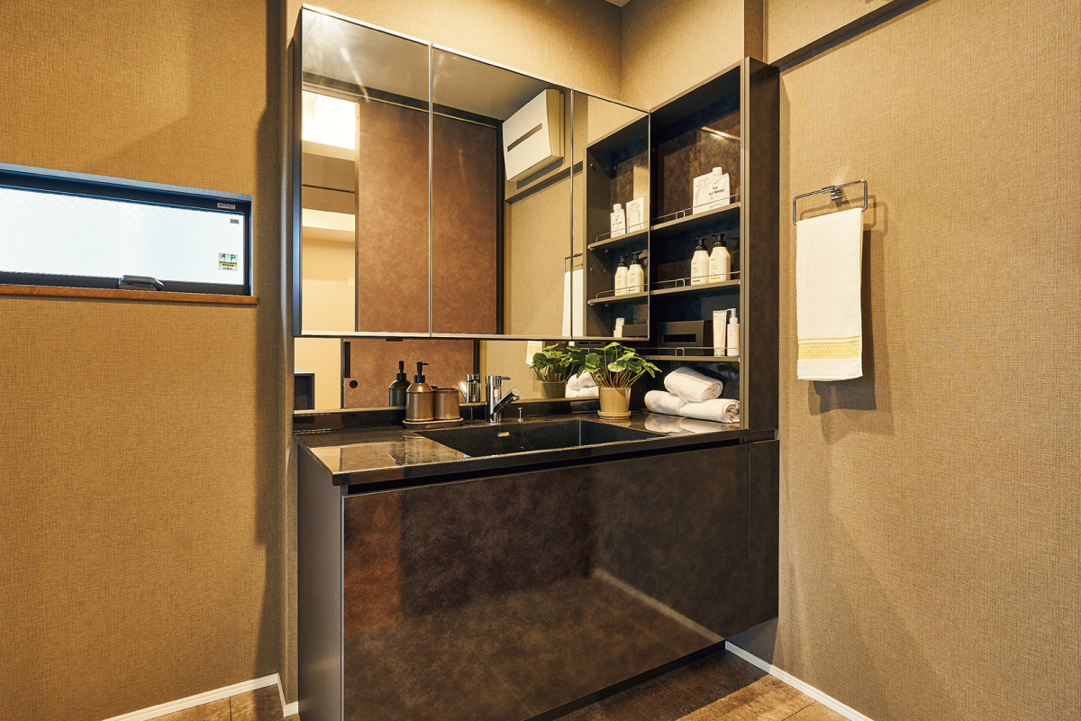 上質感あふれる人工大理石カウンター、省エネや快適性、お手入れのしやすさにも細やかに配慮したポラスオリジナルのドレッサーを採用しています。※写真はイメージです。